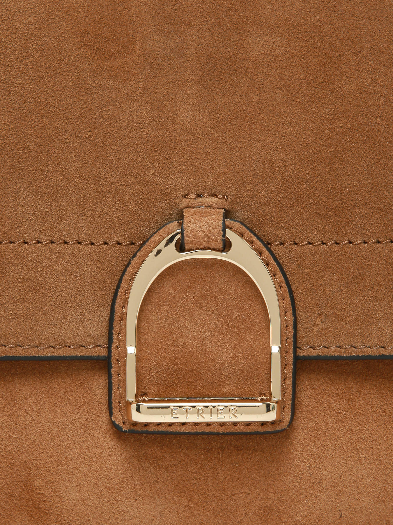 The ETRIER crossbody bag from the ALTESSE SUEDE line is offered in its medium size, the S model. This new winter edition of our iconic line features soft, warm velvety leather, combining timeless elegance with a ""Highlander Cowboy"" spirit. The back of the bag is made of grained leather for enhanced durability. Equipped with a back pocket and a magnetic flap accented by the gold-tone Etrier emblem, it can be carried by hand using its small handle or worn on the shoulder with its adjustable, removable strap.