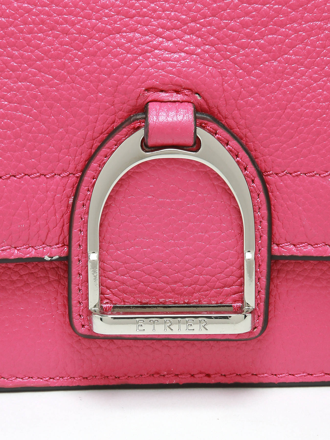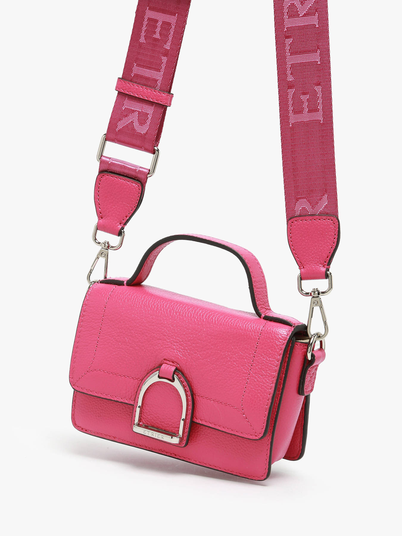 The ETRIER crossbody bag from the ALTESSE line comes in a mini size. Made of full-grain cow leather, it features a back pocket and a wide removable shoulder strap in embroidered canvas with the tonal ETRIER logo, as well as a leather handle. Its flap closure, adorned with the iconic metal stirrup emblem of the house, securely fastens with a magnetic snap. Versatile, it can be worn crossbody or by hand. Inside, a leather key holder accompanies a compartment with a flat pocket and a zip pocket for optimal organization. It is available in several seasonal colors, as well as in two larger sizes.